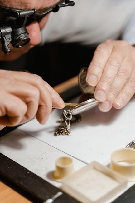 Precision screwdrivers, both flathead and Phillips, are vital for disassembling components. Pegwood is used to safely remove gears and springs without damage. Mainspring winders are essential for tensioning springs accurately. A jeweler’s loupe or magnifying glass aids in inspecting small parts. Pliers and tweezers are necessary for handling delicate components; A timing dial or beat analyzer helps adjust the escapement mechanism. Lubrication tools, like oilers, ensure proper lubrication of moving parts. A clean, stable workspace with a soft cloth or jeweler’s mat is crucial to prevent damage during repair. These tools are fundamental for a successful 400 Day Clock restoration.