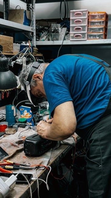 Cleaning and replacing worn-out components is essential for maintaining ignition system performance․ Start by identifying damaged or corroded wires, connectors, or spark plug boots using the wiring diagram as a guide․ Clean corrosion from terminals using a wire brush or sandpaper, ensuring all surfaces are free of debris․ For severe wear, replace components with genuine or high-quality aftermarket parts․ When replacing, follow the diagram to ensure proper connections and routing․ Apply dielectric grease to connectors to prevent future corrosion․ Regularly cleaning and replacing worn parts prevents misfires, poor fuel efficiency, and potential engine damage․ Always disconnect the battery before performing repairs to avoid electrical shocks or system damage․