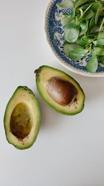 A well-structured 7-day meal plan ensures variety and nutrient balance, focusing on plant-based proteins like tofu, tempeh, lentils, and eggs, paired with non-starchy vegetables and healthy fats. Breakfast options might include tofu scrambles or spinach omelets, while lunches could feature salads with chickpeas or avocado. Dinners might involve roasted vegetables with quinoa or stuffed bell peppers. Snacks like nuts, seeds, or veggie sticks with hummus keep energy levels steady. The plan emphasizes whole, unprocessed foods, avoiding high-carb grains and sugars. Downloadable PDF guides provide detailed recipes and grocery lists, making it easier to stick to the diet while ensuring all nutritional needs are met for optimal health and weight management.