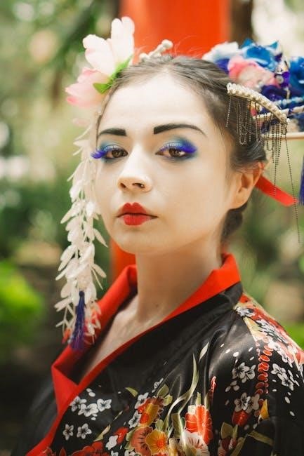 Japanese makeup is rooted in the concept of natural elegance, emphasizing subtle enhancement over bold statements. The aesthetic celebrates soft, understated beauty, focusing on healthy, radiant skin and delicate features. It avoids heavy coverage, instead opting for light, sheer products that allow the skin’s natural texture to shine. This approach creates a timeless, polished look that exudes refinement and grace, perfect for everyday wear or special occasions. The goal is to enhance one’s natural beauty while maintaining a fresh, youthful appearance.