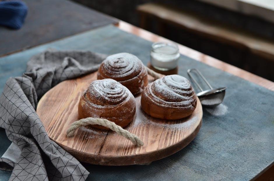 Using a recipe book for bread makers ensures consistency and accuracy in baking, helping users achieve perfect loaves every time. It provides clear guidelines for ingredient ratios, machine settings, and baking techniques, making it ideal for both beginners and experienced bakers. The book also offers a variety of recipes to cater to different tastes and dietary needs, from classic white bread to gluten-free and sourdough options. By following the instructions, users can experiment with new flavors while maintaining high-quality results, making it an indispensable tool for mastering bread making with ease and confidence.